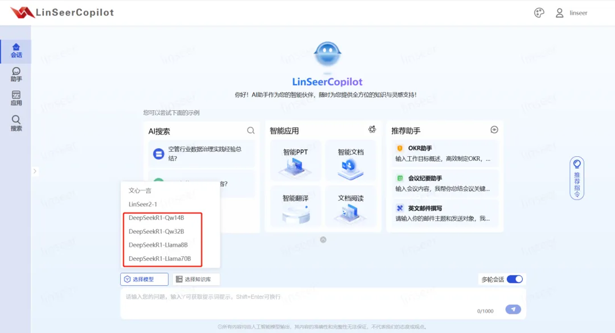 基于1+N大模型策略,新华三自研一站式大模型服务平台软件-灵犀使能平台(LinSeer Hub)已经实现对DeepSeek V3/R1模型的纳管和上架,适配了不同尺寸的蒸馏模型及原生模型,包括8B、14B、32B、70B、671B等,并支持演示体验(linseer 91蜜桃在线观看,h3c,com)。。